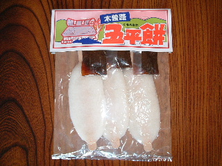 左、木曾名物五平餅、中、名古屋名産味噌キャラメル、左『宗ちゃんの初戀』でございます(^・^)